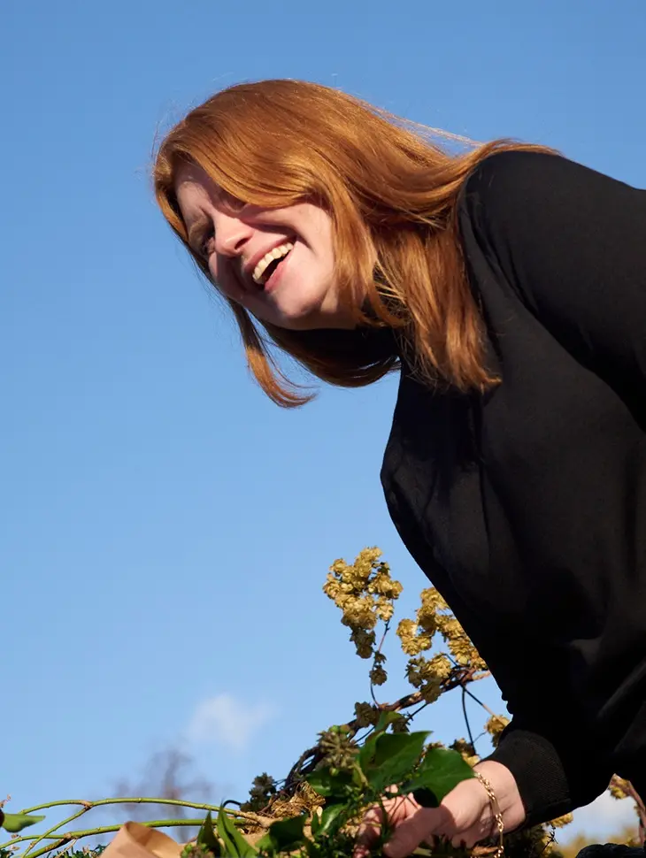 London-based floral designer Flora Fricker champions seasonal British flowers and UK producers in her beautiful and sustainable creations. This season, we worked with Flora to style Sunspel stores for Christmas, for which she produced eye-catching sustainably sourced wreaths.